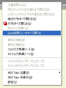 | 概要: | MDITabs:右ボタンメニューに「Grepビューをすべて閉じる」が欲しい | ||||||||