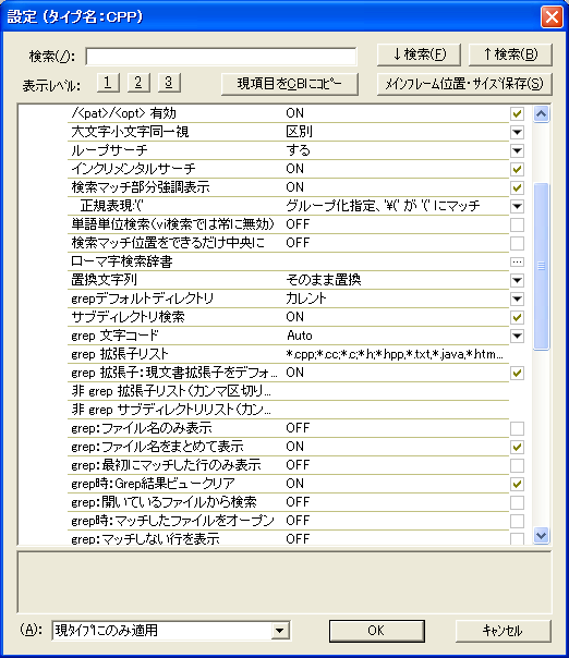 | > 正規表現オプションOFFでの grep はい、その通りです。 念の為、grepウィンドウの画像も添付します。 よろしくお願いいたします。 |